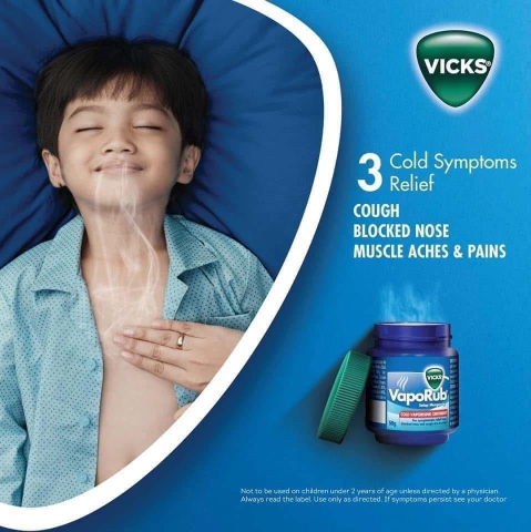 ✔ Giúp làm ấm cơ thể, làm giảm ho, nghẹt mũi, khó thở, cảm lạnh, giúp ngủ ngon không bị thức giấc nửa đêm. Ở nước ngoài, trước khi đi ngủ, người ta thường thoa Vicks VapoRub lên hai bàn chân rồi dùng vớ dày mang vào ngủ, sáng hôm sau sẽ cảm thấy khỏe hơn.