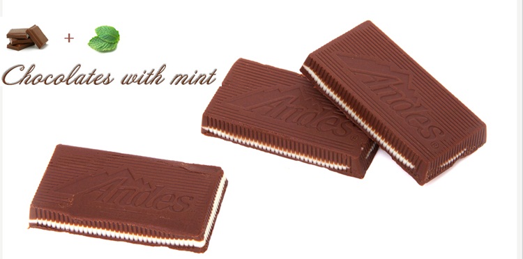 - Ngoài việc mê hoặc bạn bởi hương vị, thì sau bữa ăn tối, thưởng thức một thanh Kẹo Socola Nhân Bạc Hà Andes sẽ giúp bạn làm sạch vòm miệng bởi bạc hà, giúp bạn thư giãn nhẹ nhàng và có buổi tối vui vẻ.