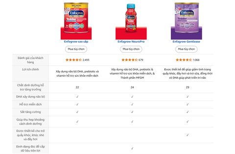 | Tại sao nên chọn Enfagrow? | Enfagrow được thiết kế để cung cấp một loạt các dưỡng chất hỗ trợ sự phát triển toàn diện và bổ sung cho chế độ ăn uống của trẻ mới biết đi. Cho dù bạn có con kén ăn hay đang tìm kiếm loại sữa dinh dưỡng tốt nhất cho con, Enfagrow đảm bảo bé yêu của bạn sẽ nhận được đầy đủ dưỡng chất cần thiết với hương vị thơm ngon. |